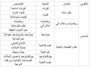على مستوى الليسانس: 3 ميادين – 9 شعب – 13 تخصص