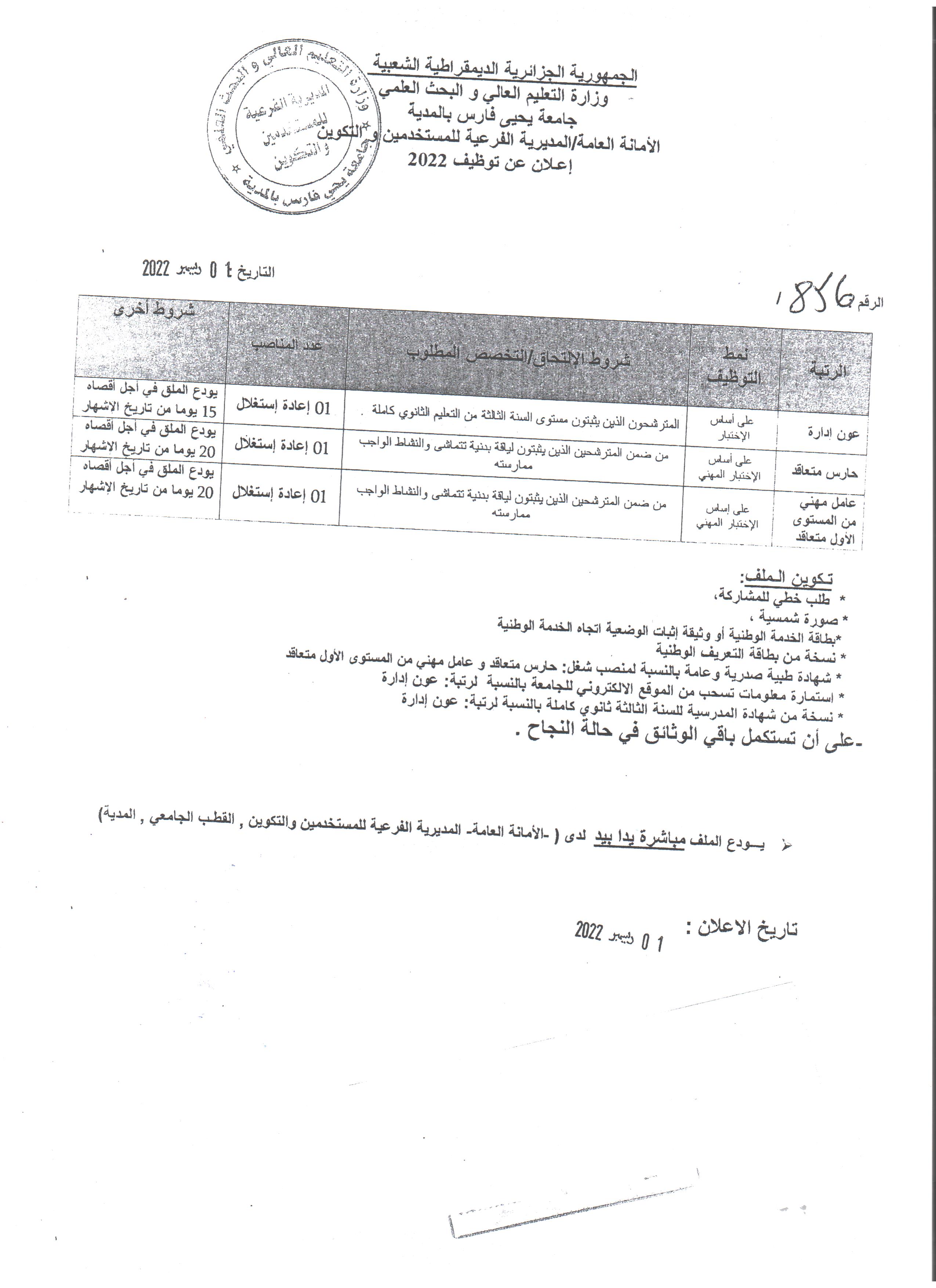 إعلان توظيف