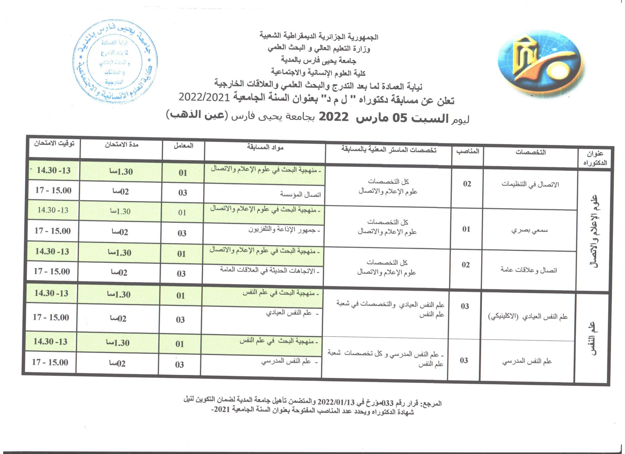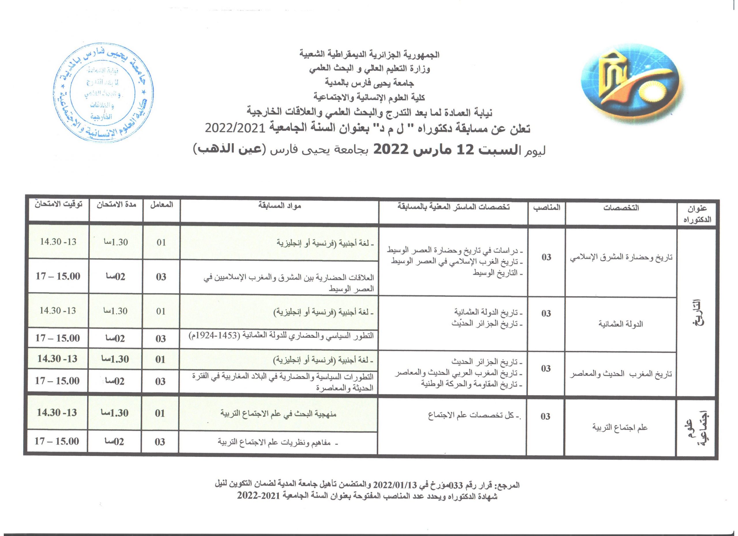 مسابقة وطنية للالتحاق بالطور الثالث لنيل شهادة الدكتوراه للسنة الجامعية 2021-2022
