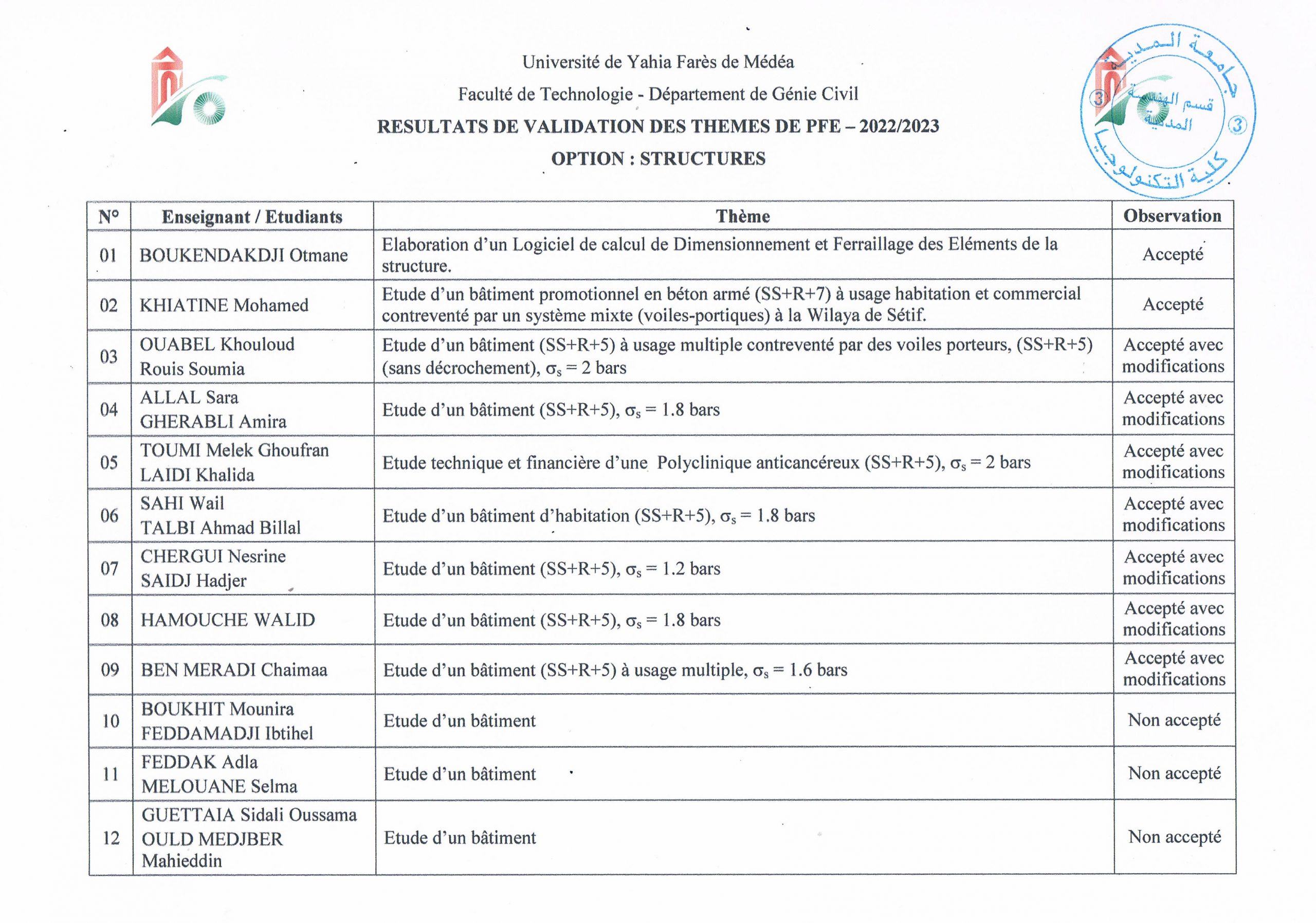 Avis aux étudiants M2 Génie Civil (Toutes options)