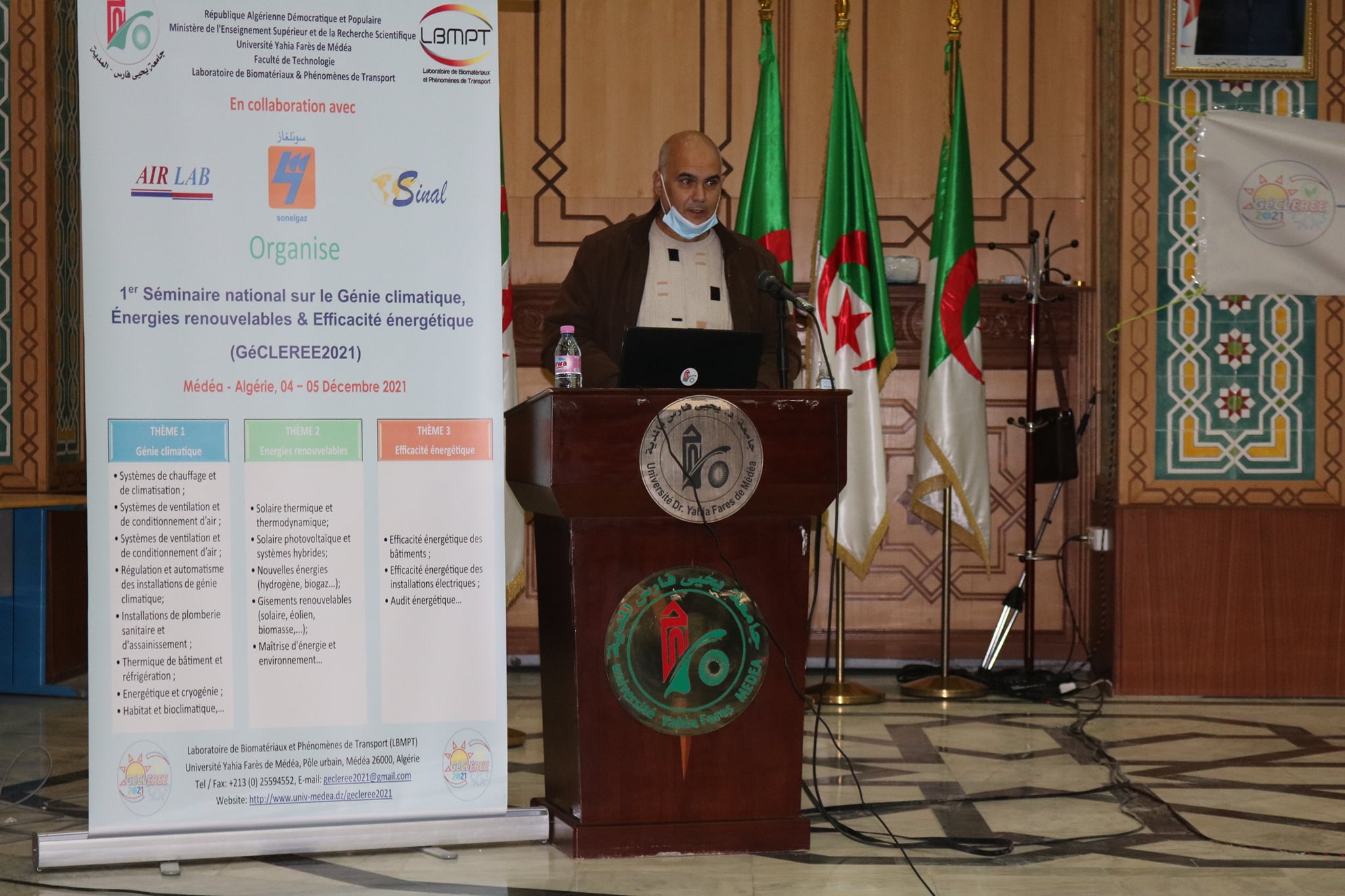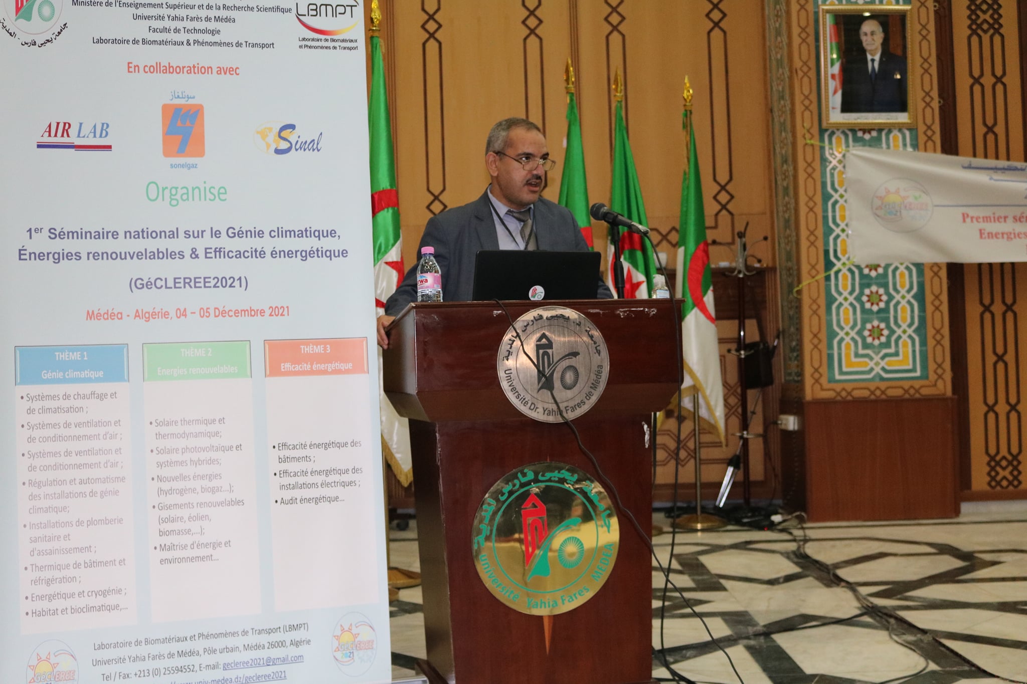 Ce séminaire a pour objectif de promouvoir la recherche scientifique et de réunir des spécialistes dans les domaines du génie climatique, des énergies renouvelables et de l'efficacité énergétique. Il se veut aussi un échange de connaissances en vue de favoriser la synergie entre les chercheurs et de promouvoir les initiatives de recherche et d’innovation particulièrement dans les secteurs de l'énergie, son contrôle et sa maîtrise,...; les outils de conception d'installations, les technologies et principes physiques des systèmes énergétiques, en particulier thermiques et électriques: chauffage, ventilation, climatisation, pompes à chaleur, traitement et conditionnement d'eau & air, géothermie, énergie solaire thermique, photovoltaïque, éolien, biomasse,...; les bâtiments basse consommation et énergie positive, l'autoconsommation totale et partagée, les systèmes énergétiques centralisés et décentralisés,...