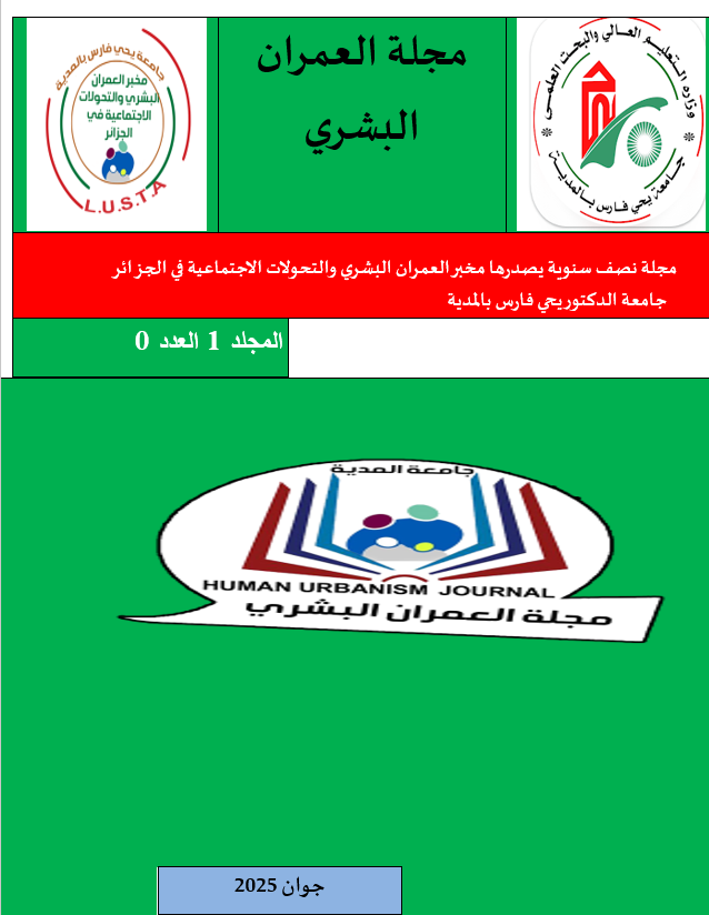 يسعدنا أن نقدّم للقراء الكرام العدد التجريبي الأول من مجلة العمران البشري، التي تصدر عن “مخبر العمران البشري والتحولات الاجتماعية في الجزائر”، والتي تُعنى بنشر الدراسات والأبحاث العلمية في مجالات العلوم الاجتماعية والإنسانية، سعيًا إلى الإسهام في إثراء النقاش الأكاديمي وتعميق الفهم العلمي للتحولات التي تعرفها مجتمعاتنا.